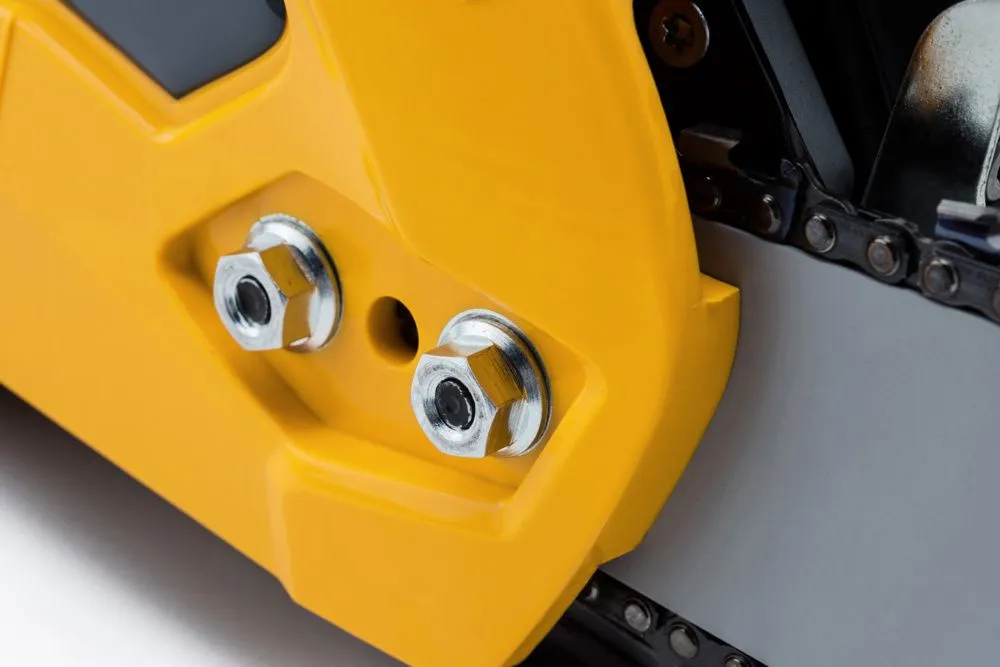 Die Kettensäge STIGA CS 545 (16'')mit einer 40 cm breiten Führungsschiene wird von einem 42,4-cm³-Motor (1,9 kW) angetrieben. Dies sorgt für eine hohe Leistung und Vielseitigkeit. Die CS 545 (16'')verfügt über ein 40 cm (16'') breites Schwert und ein Magnesiumdruckgussgehäuse, das folgende Vorteile bietet: Robustheit, Leichtheit und eine schnelle Kühlung. Der Spannschlüssel befindet sich leicht zugänglich unter dem hinteren Griff und die Ölpumpe läuft automatisch und ist einstellbar. Wartungsarbeiten können dank der Funktionen schnell und einfach durchgeführt werden. Dazu zählen u. a. der Griff zum Öffnen der Luftfilterabdeckung, ohne dass zusätzliche Werkzeuge erforderlich sind, und das Fenster für die Füllstandkontrolle. Der ergonomische Griff aus weichem Material und das Federsystem dämpfen die Vibrationen und sorgen für einen höheren Komfort.