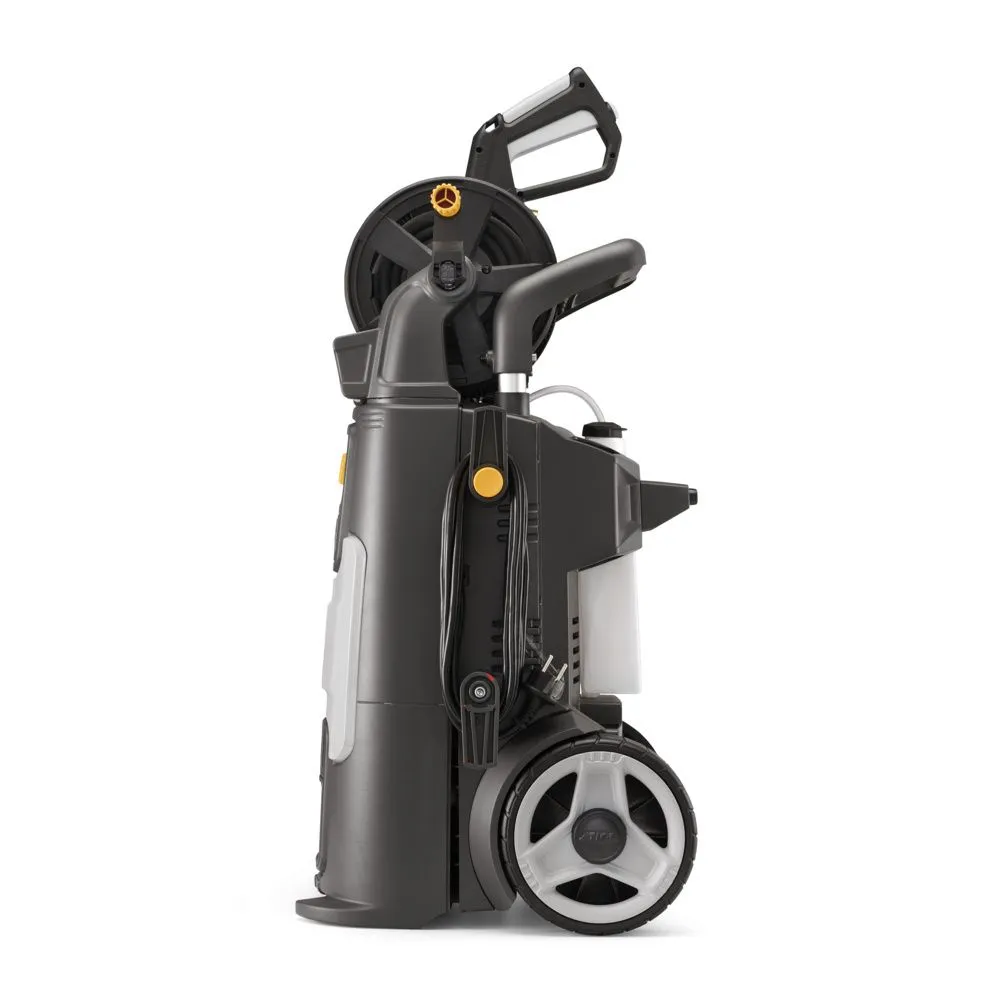 Der Stiga HPS 550 R ist dank seines zusätzlichen Handgriffs die perfekte Lösung, um mit Leichtigkeit und höchstem Bedienkomfort selbst große Arbeitsbereiche zu reinigen. Der Hochdruckreiniger arbeitet mit kaltem Wasser und verfügt über hochwertige Komponenten. Dank der Gummiräder und des Teleskopgriffs können Sie den Reiniger bequem und schnell innerhalb des zu reinigenden Bereichs bewegen. Die Bedienelemente sind allesamt nicht nur leicht zu erreichen, sondern mit gelber Farbe auch gut sichtbar gekennzeichnet. Mit diesem Hochdruckreiniger können selbst starke Verschmutzungen an Gartenmaschinen, Terrassen und sogar Autos, Transportern und Swimming Pools gereinigt werden