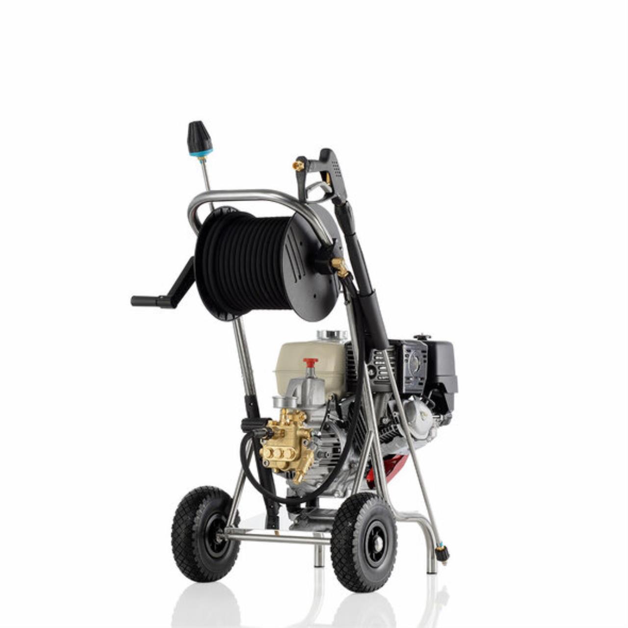 Mit Kränzle Hochdruckreinigern mit Benzinmotoren sind Sie auf der sicheren Seite, wenn höchste Reinigungskraft unabhängig von der Stromversorgung gefragt ist. Die Profi-Jet-Serie überzeugt durch ein äußerst robustes Edelstahl-Fahrgestell, einen servicefreundlichen Honda-Motor mit integrierter Ölmangelsicherung und einem praktischen Ordnungssystem für Hochdruckpistole und Reinigungslanzen. Die optionale Drehzahlregulierung reduziert Geräusch und Kraftstoffverbrauch.