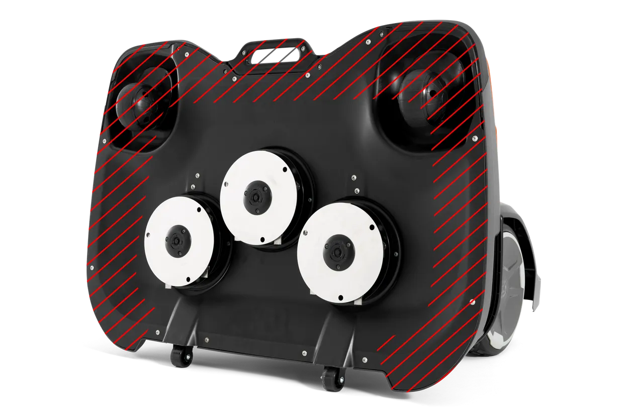 Die ergonomische und einzigartige Wartungsposition ermöglicht eine einfache Wartung und Handhabung, da das Mähdeck schnell gekippt werden kann, um einen einfachen Zugang zu den Messertellern oder eine Reinigung mit dem Schlauch zu ermöglichen (IPX5-Klassifizierung).