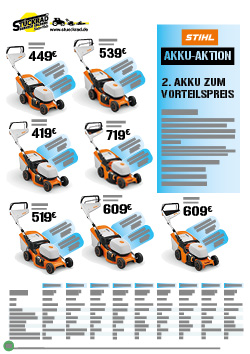 Wir haben spannende Angebote für Sie in unserem neuen "Stückrad Prospekt 2025". Sie können es sich ganz in Ruhe anschauen und auf Ihren Computer, Smartphone oder Tablet anzeigen lassen. Sie können sich freuen über unser Sortiment von Gartengeräten mit Akku-, Elektro- oder Benzinmotor. Unsere Hausmarken sind Stihl, Husqvarna, Sabo, Honda, Stiga, AS-Motor, Tielbürger, Kränzle, Westermann, Eliet, Echo und Greenbase eG.
